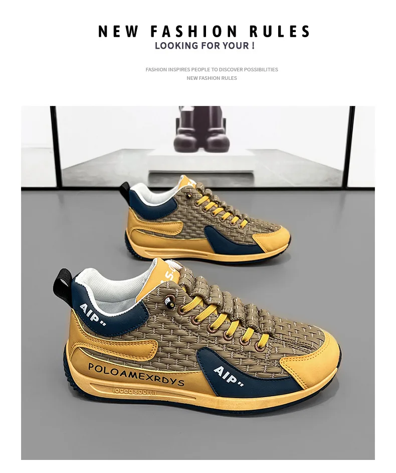 Trendy printed leather, comfortable, breathable and versatile men's casual shoes