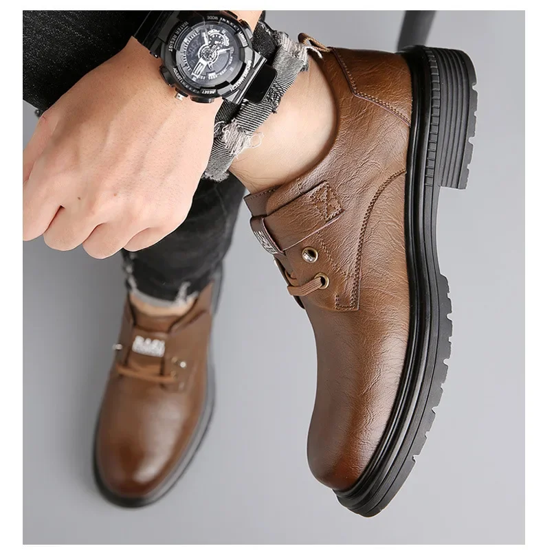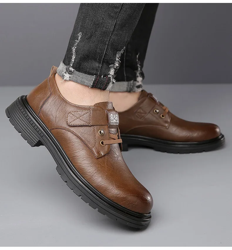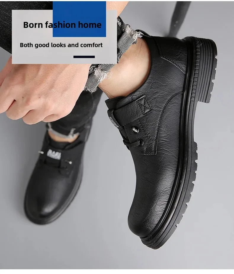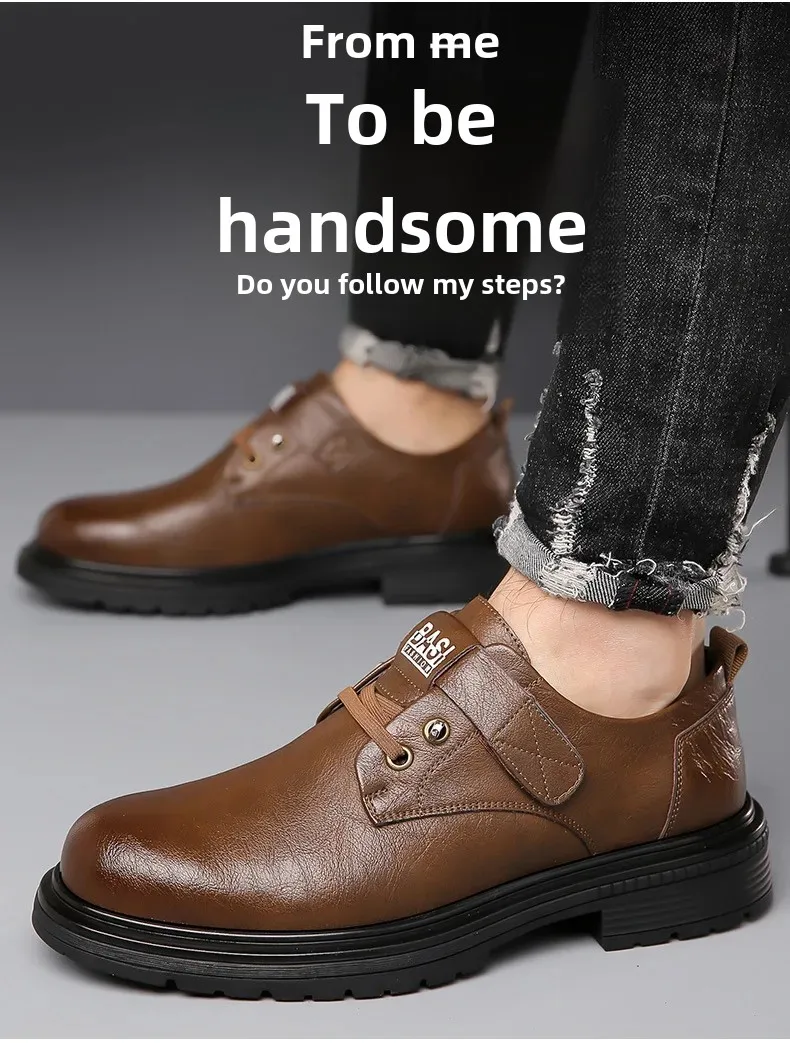Retro British style trendy versatile men's casual leather shoes