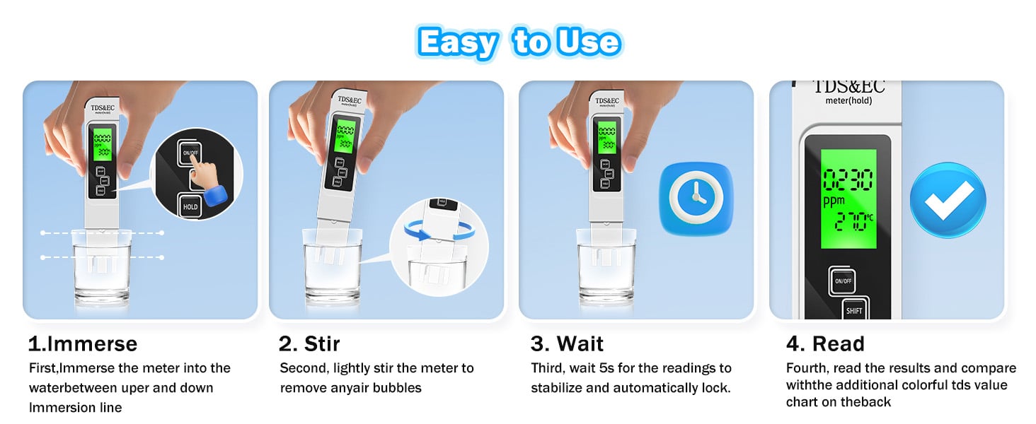 Combines TDS, EC and temperature measurements in one powerful unit with a large backlit LCD screen that is clear and easy to read.