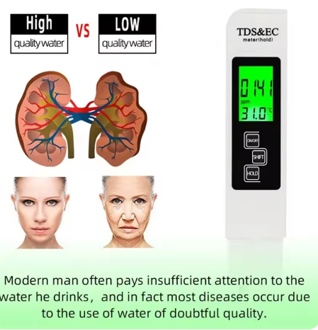 TDS (Total Dissolved Solids): Measures the content of dissolved substances in water to determine water purity.