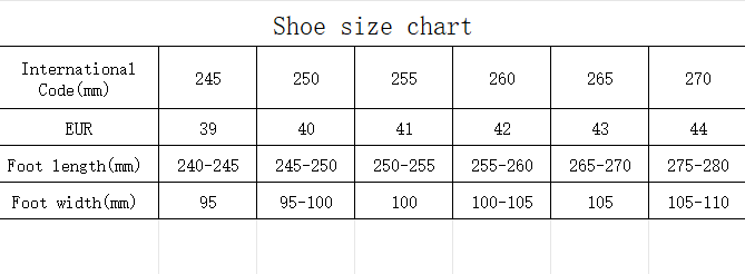 The size numbers marked on the soles are Chinese size numbers, not European sizes.