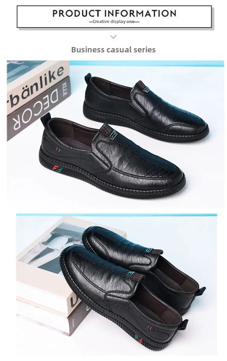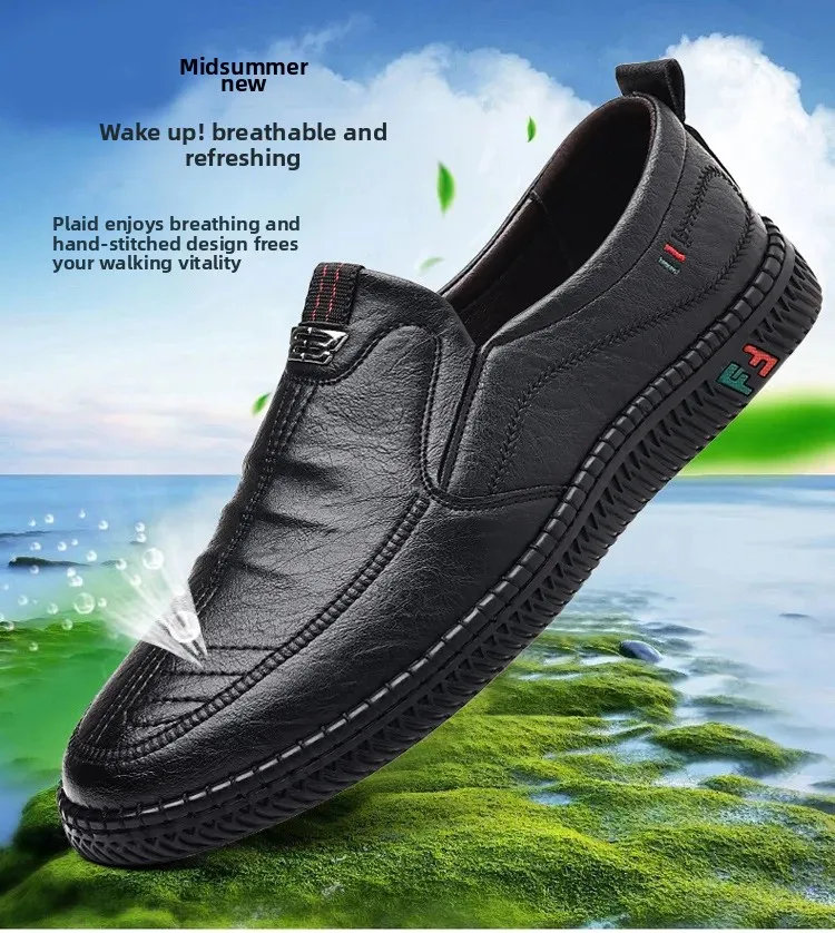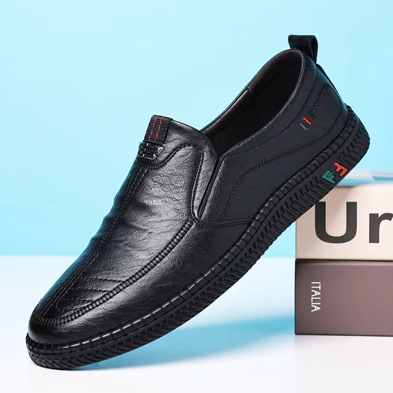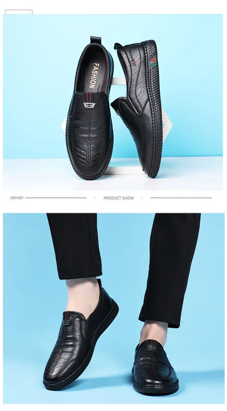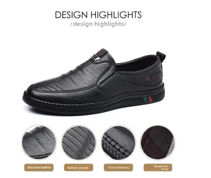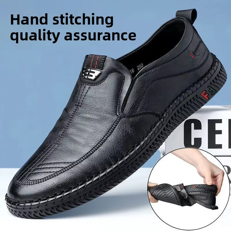 New men's casual leather shoes, slip-on, versatile, soft sole and non-slip