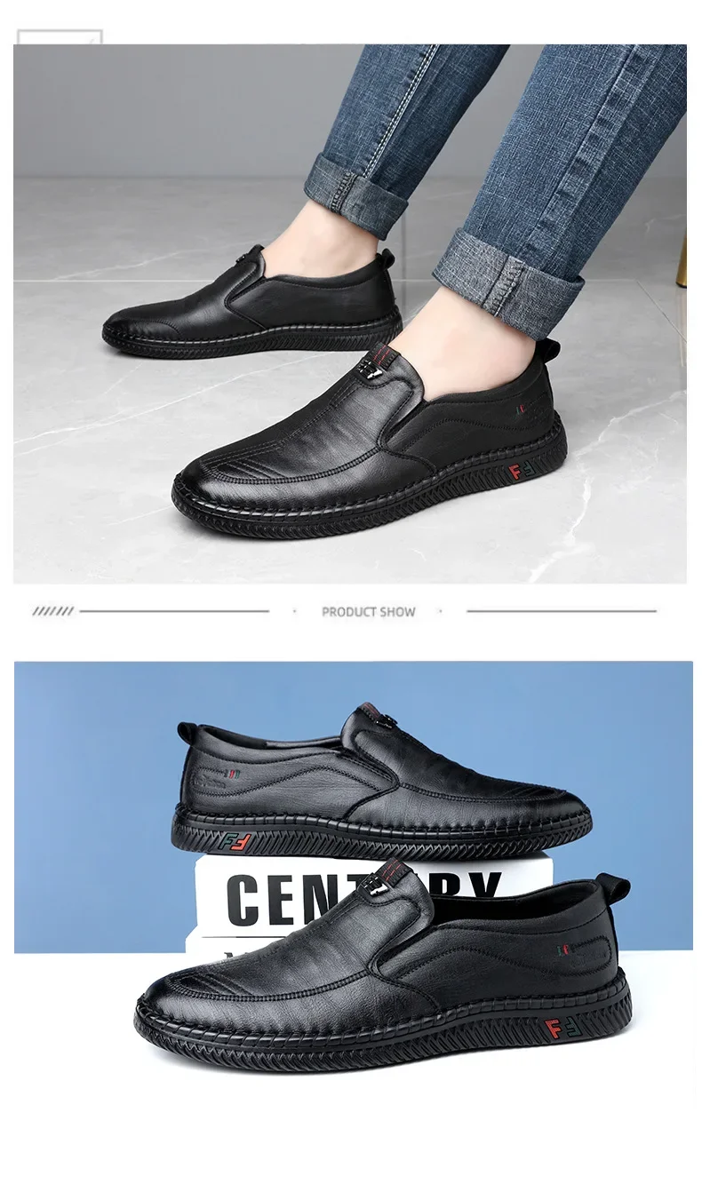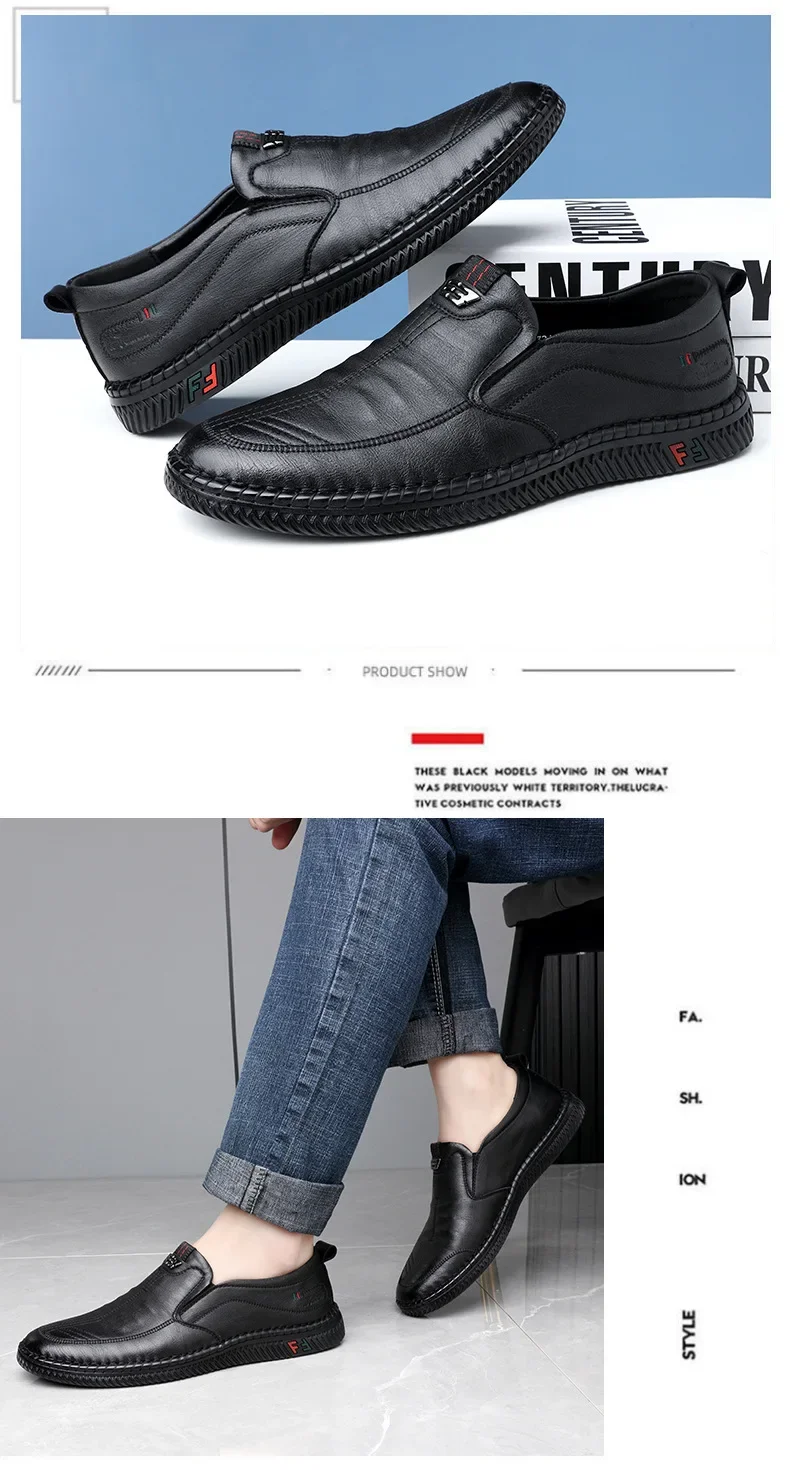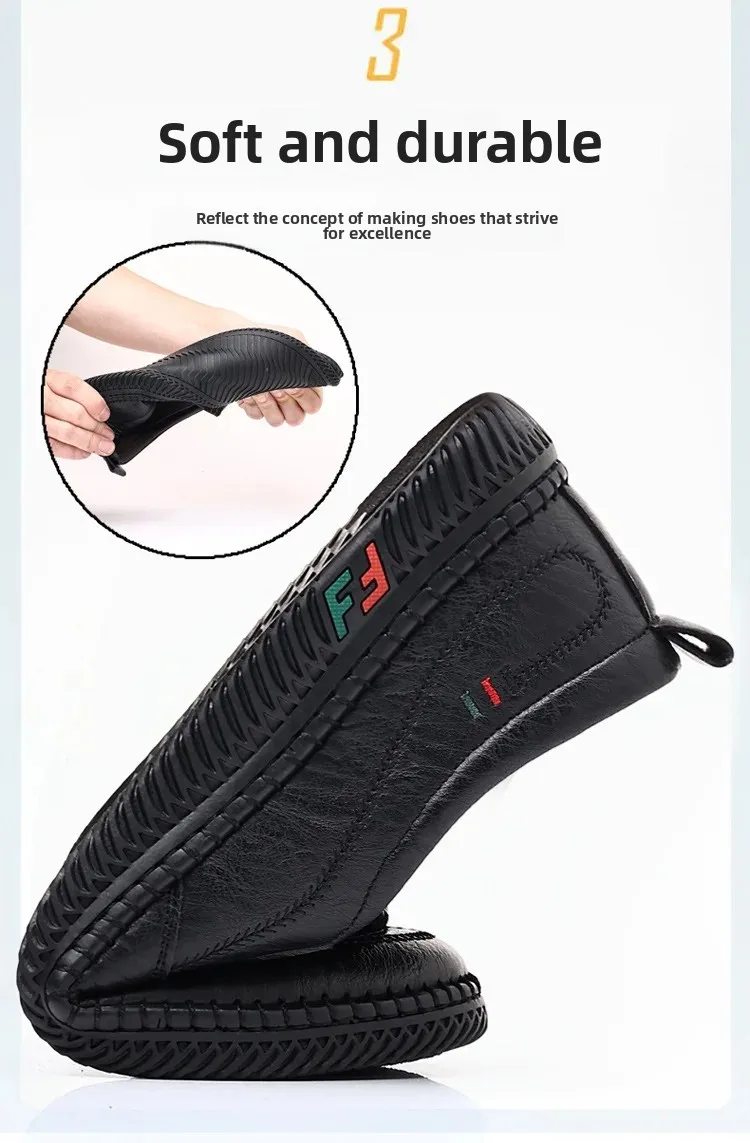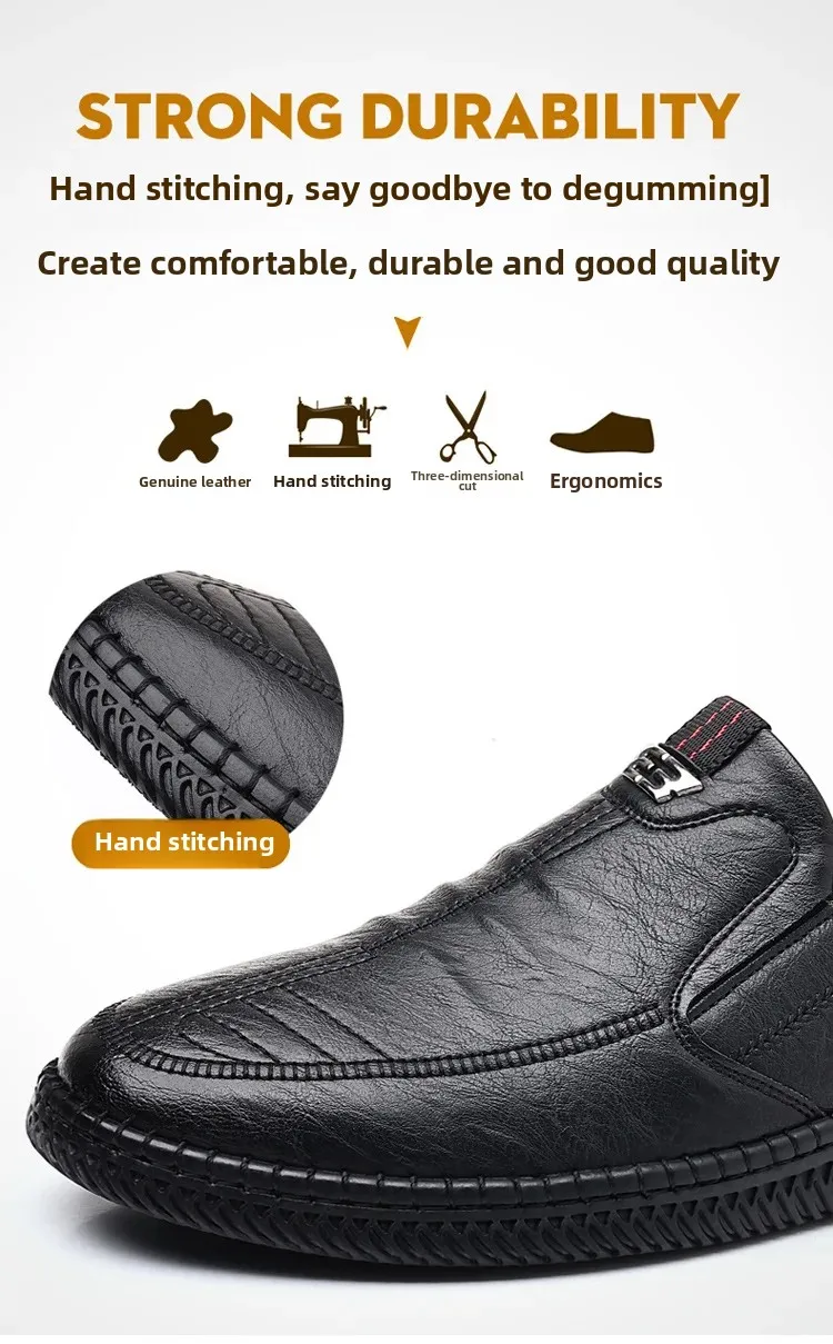 New men's casual leather shoes, slip-on, versatile, soft sole and non-slip